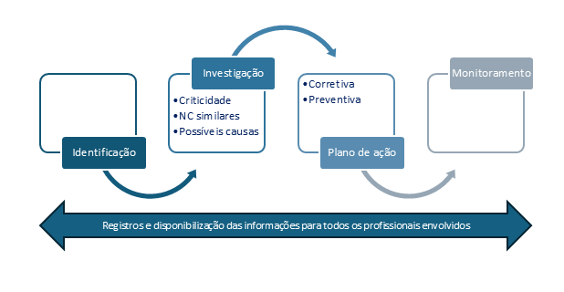 Os registros devem conter informações relevantes geradas durante o processo, desde a descrição da não conformidade, as análises realizadas pelos profissionais envolvidos, as decisões tomadas, as ações e respectivos resultados até a conclusão.