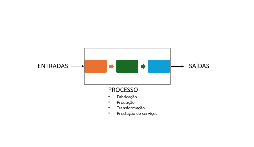 Processo é um conjunto de atividades realizadas em sequência e que adicionam valor e transformam entradas como materiais, mão de obra, equipamentos, utilidades, tecnologia e métodos em saídas como bens, produtos e serviços.