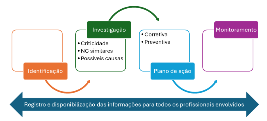 Os registros devem conter informações relevantes geradas durante o processo, desde a descrição da não conformidade, as análises realizadas pelos profissionais envolvidos, as decisões tomadas, as ações e respectivos resultados até a conclusão.